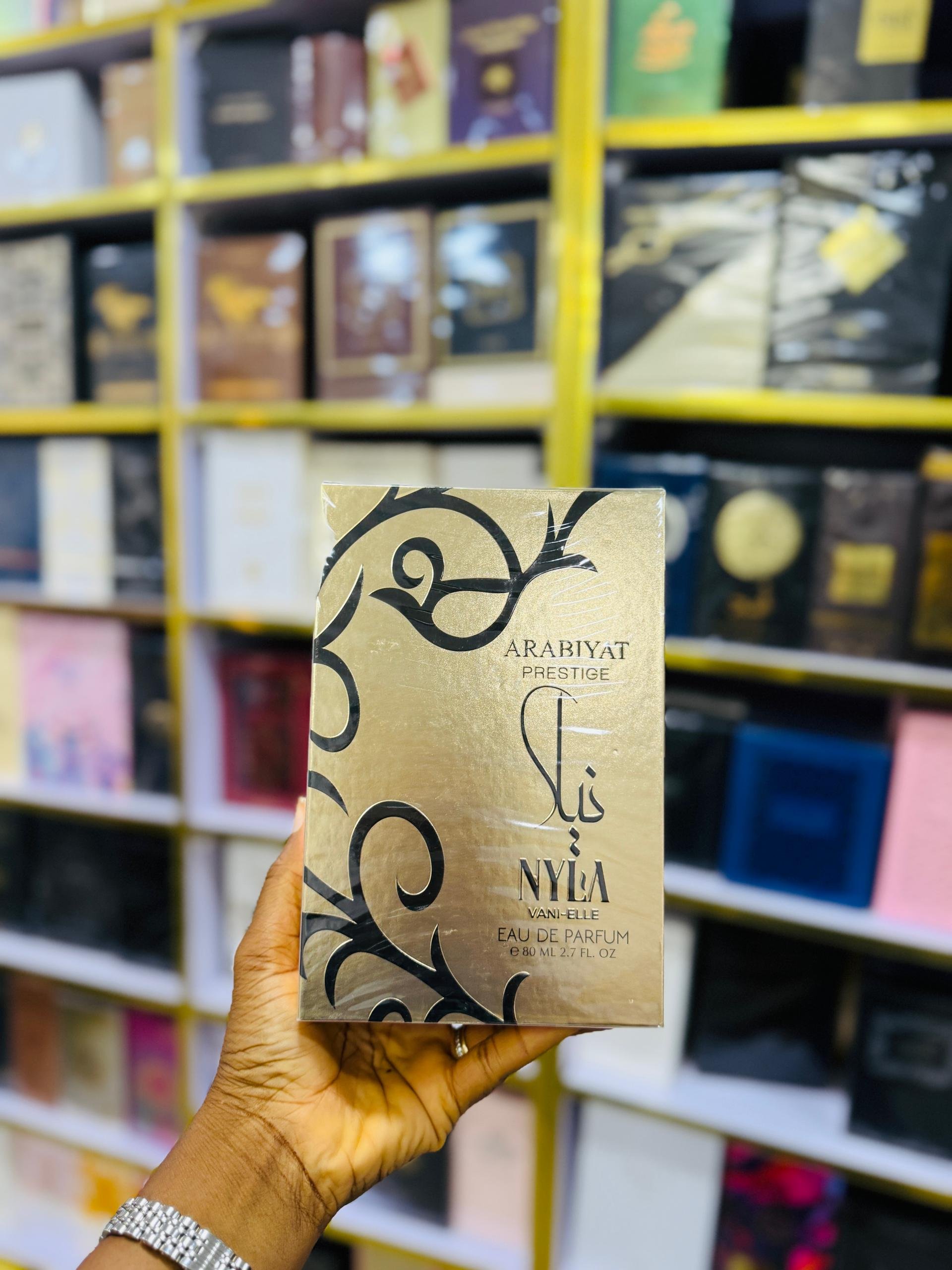 Nyla Vani-Elle by Arabiyat Prestige is a fragrance for women and men. This is a new fragrance. Nyla Vani-Elle was launched in 2024. The nose behind this fragrance is Elodie Bernard. Top notes are Vanilla Bean and Jasmine; middle notes are Caramel and Amber; base notes are Vanilla, Tonka and Musk.