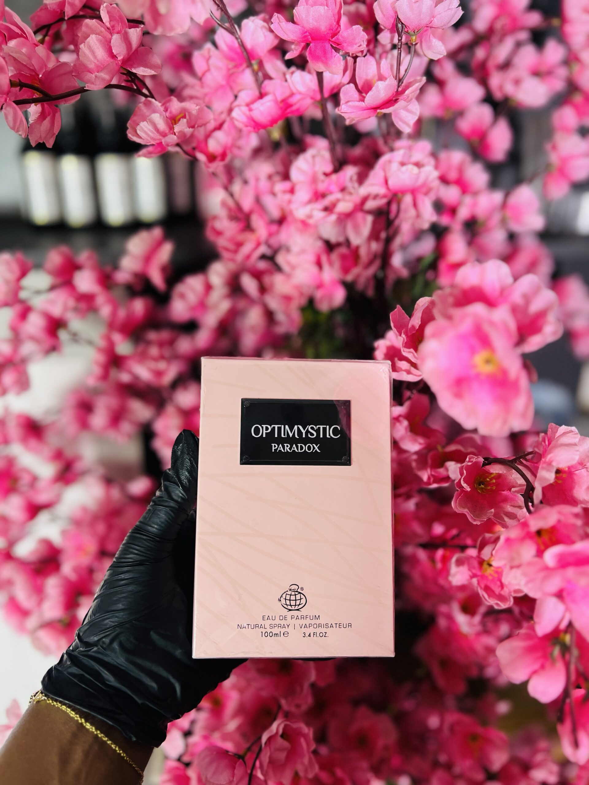 Optimystic Paradox by Fragrance World is a contemporary fragrance characterized by its bright citrus opening, floral heart, and gourmand-amber base. The composition begins with fresh pear, mandarin, and bergamot notes that create an uplifting introduction. A floral core of orange blossom, neroli, and jasmine sambac adds refined elegance, while the base combines Bourbon vanilla, amber, and benzoin for warmth and lasting depth. Suitable for both daytime and evening wear, this versatile scent balances freshness with sensual sophistication.